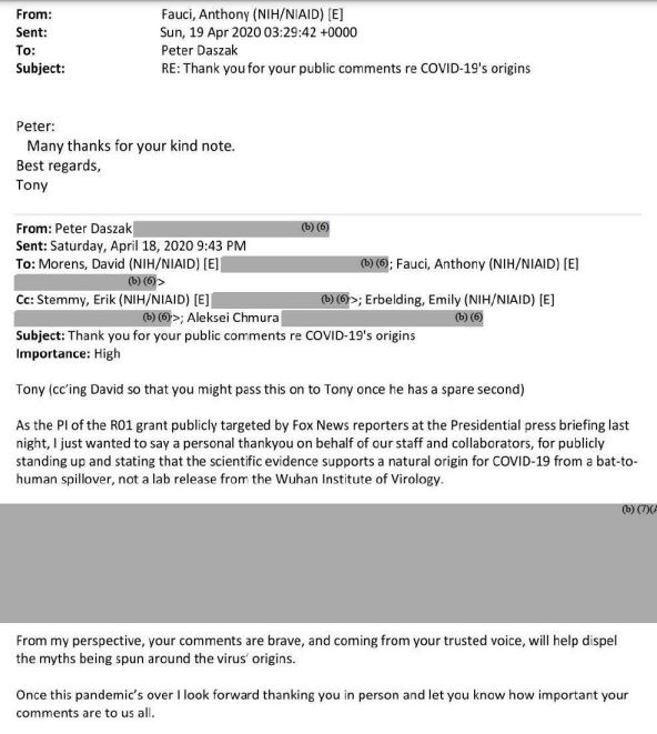 Dr. Fauci told Rand Paul: “Senator, with all due respect, you are entirely and completely incorrect, that the N.I.H. has not ever and does not now fund gain-of-function research in the Wuhan Institute.” The N.I.H. used Daszak as its surrogate to do this. To hold Daszak responsible means holding Fauci responsible which the Democrats and Corporate Media will not do.